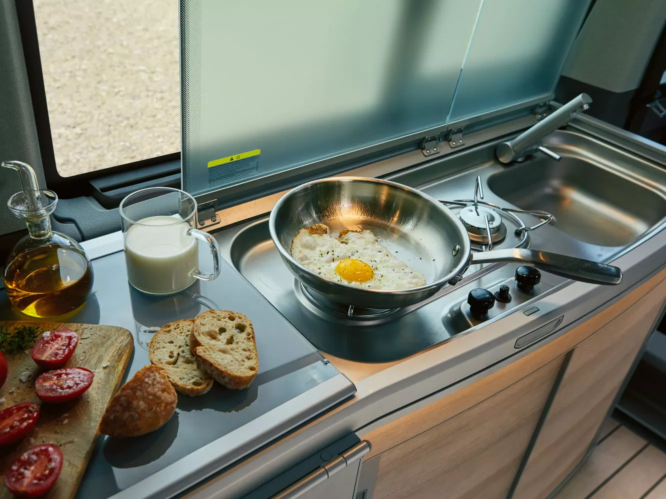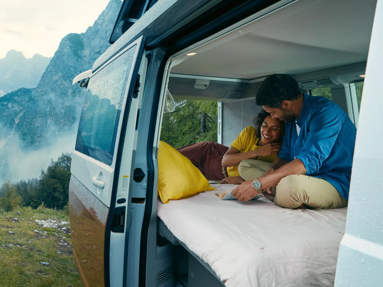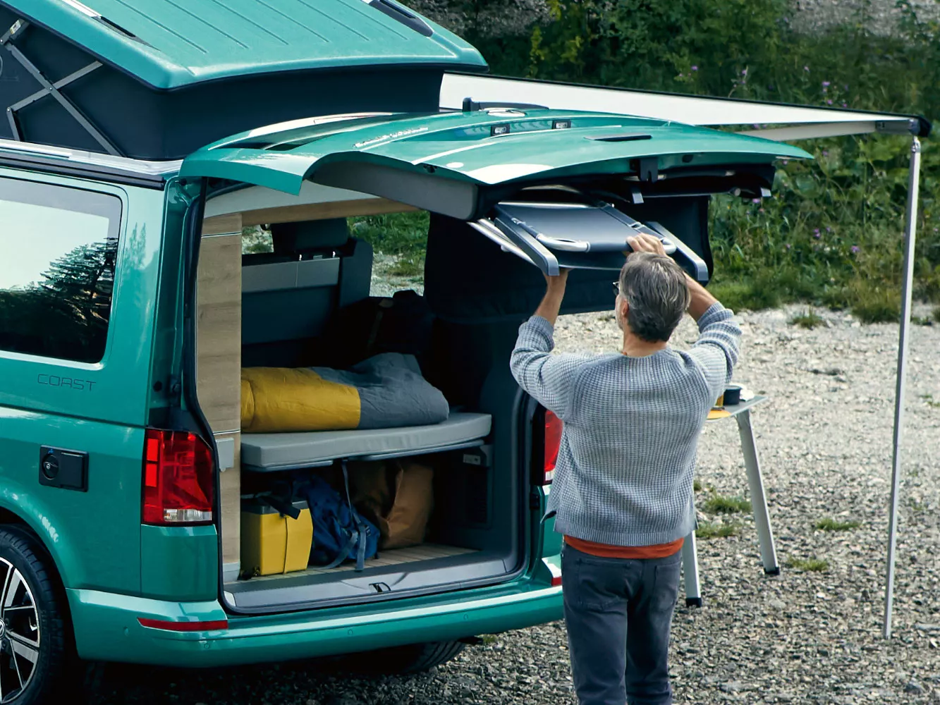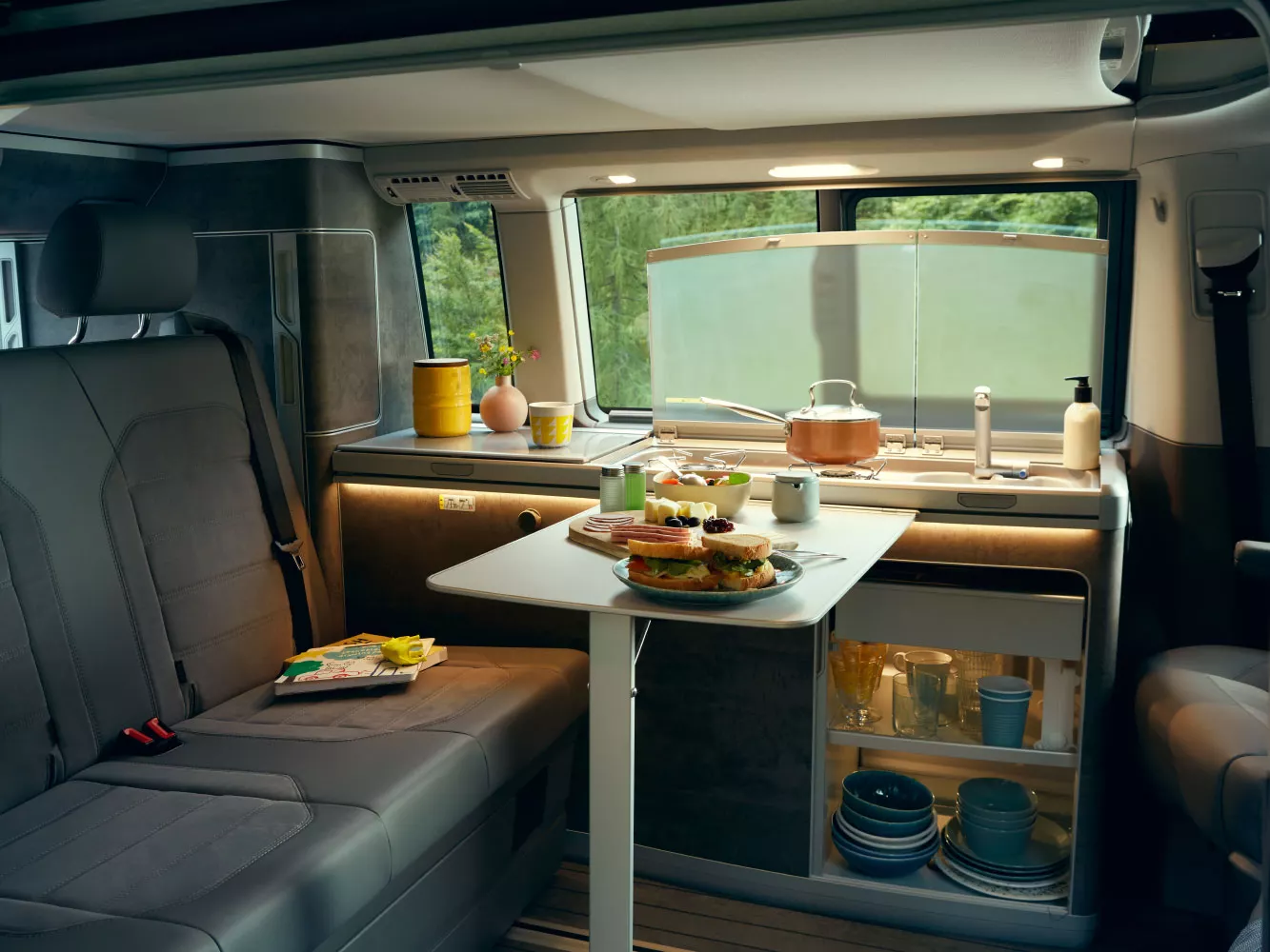Whether at your house or away, the California 6.1 is the ideal travel and leisure camper van to make you feel right at home anywhere. Experience the powerful engine, high-quality interior fittings, modern infotainment and driver assist systems as well as the innovative WeConnect Go. All ready to help you get out of the norm in style.